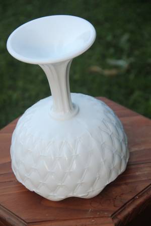 Vintage Footed Crimped Vase in Quilted Duette Milkglass-Indiana Glass!