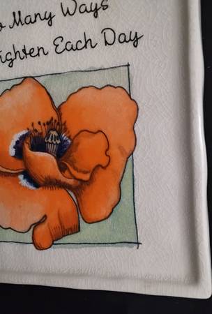 This is a vintage handpainted poppy wall tile. It has the appearance of crasing, though it is not in the glaze. (See pictures)