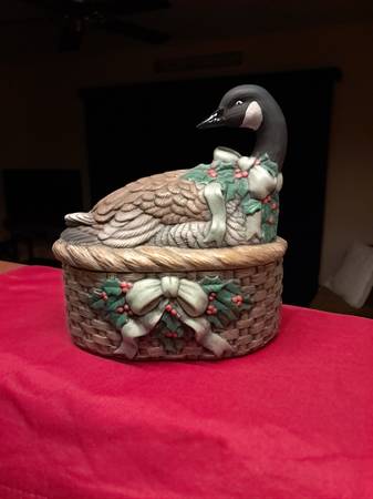 Beautiful: Hand Painted Ceramic Goose Candy Dish.
