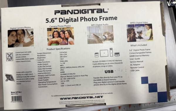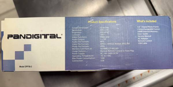 Pandigital photo display 5.6" frame Model DPF56-2 New never used