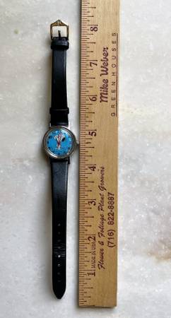 Vintage 1958 United Feature Syndicate Snoopy Watch. Wind up mechanism. Black leather band. Very good condition, just needs a cleaning.