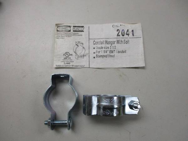 Hubbell Raco P/N # 2041 Conduit Hanger For 1-1/4" EMT Conduit ( 100 pcs. ) New Trade Size: 2-1/2 . UL Listed Located in Buffalo, NY ** For more information call Tim @ . We do not accept text...