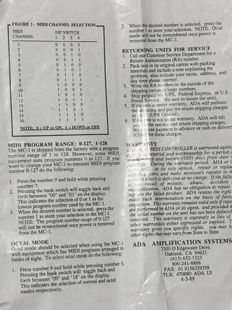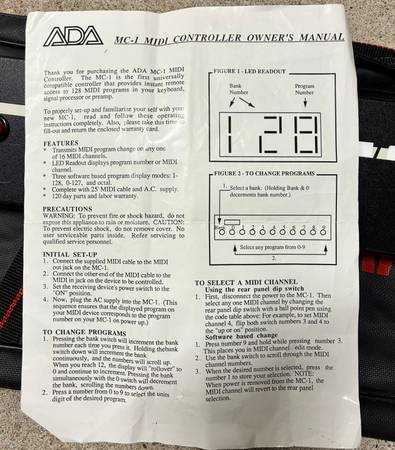 The MC-1 is a universally compatible controller that provides instant remote access to 128 MIDI programs in your keyboard, signal processor or preamp. Includes bag, midi cable and power adapter.