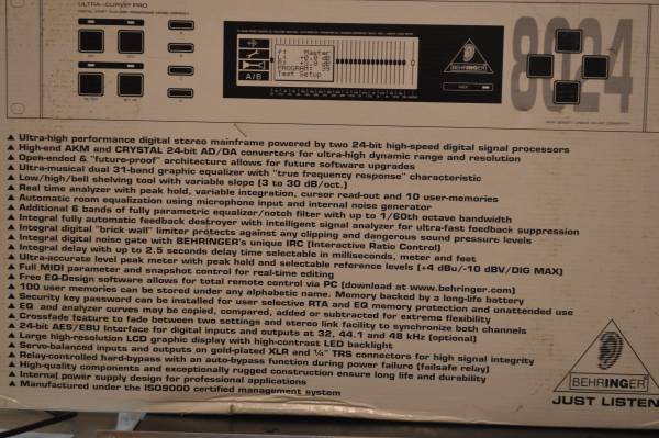 For sale is a lightly used Behringer Ultracurve DSP 8024 with original packaging and manual. Comes with power cable. Asking $50