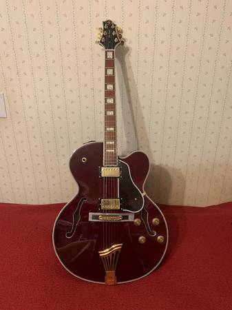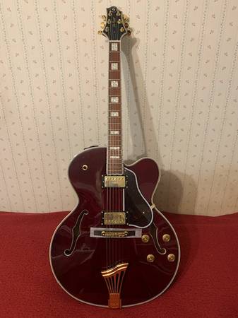 This moderately priced guitar is in tone as close to a Gibson L-5 as they come. It plays like butter and is strikingly beautiful with its Burgundy finnnish. Try it, you'll love it. It comes with a...