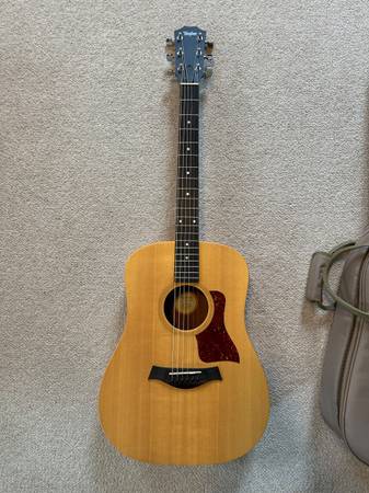 Taylor Big Baby Guitar with Pick Guard and Original Taylor Gig Bag Tan Color As new, no marks on it. This guitar was never used more than a total of 45 minutes! $435. Emails only through Craigslist...