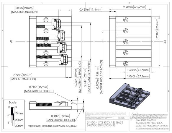 HIPSHOT KICKASS 4 STRING BASS BRIDGE