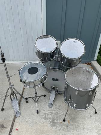 5-pc Tama Swingstar: 22/12/13/16/5.5x14 chrome snare Deep Power Toms Tama hi-hat, snare stand and bass pedal Brushed chrome finish Like new heads. Reply w phone or email
