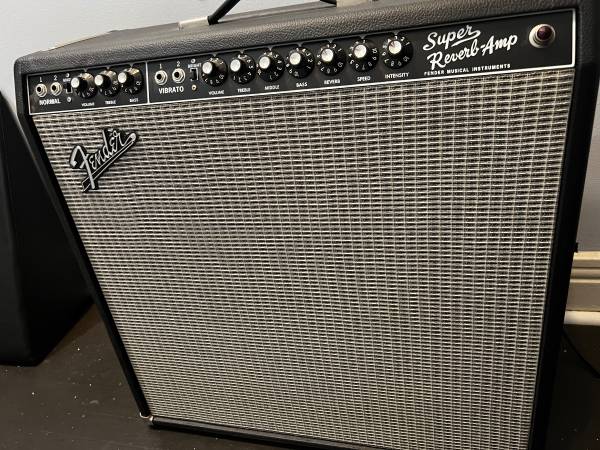 Used Fender super reverb 1965 reissue. This amp comes from a smoke free home. One owner. Barely used. Some dust and a few dirt spots otherwise clean. GREAT AMP.