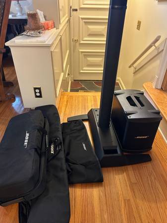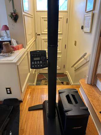 This system is portable with a 12-speaker articulated array for 180-degree sound coverage. No stands are needed as the speaker system sets in a base. It also has a ToneMatch® port which serves as a mixer that has additional inputs. Includes carrying cases. I love this system. Great sound.