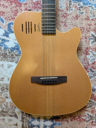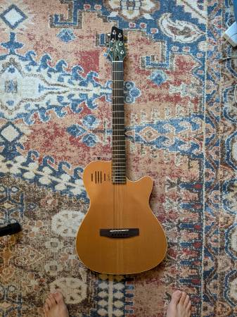 Great guitar if you need an acoustic sound in a full band setting! On its own it'll never quite keep up with a Martin or Taylor sound, but if you need a convincing acoustic guitar sound in a full band, this is an excellent solution. The body is the size of a tele and the neck is similar to a PRS, so if you're an electric player that needs an acoustic for a few songs, come check this out. I replaced the neck on it b/c the one it came with had a ton of fret wear and a broken truss rod nut, so you get the benefit of a fresh neck on it. All components work perfectly.