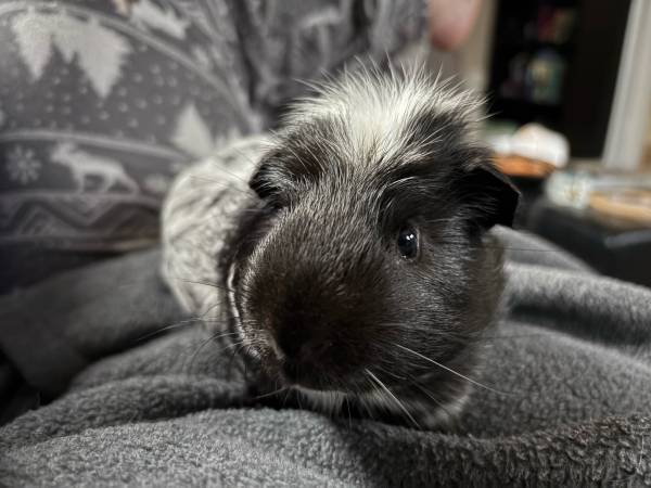 Timothy hay, some treats, and food. He has two water jugs also, he drinks a lot of water. He’s very sweet, and vocal when he needs or wants something, or attention. He’s a good guy. I just have other animals, and less time.