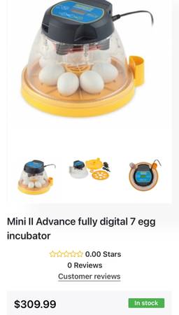 Brand new in box. Never used. Automatic turnover. Also have insert that holds 12 eggs. All new and never used $150. $309 new on Brinsea website.