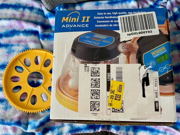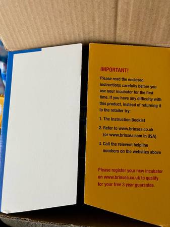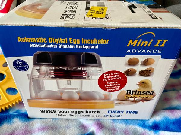 Brand new in box. Never used. Automatic turnover. Also have insert that holds 12 eggs. All new and never used $150. $309 new on Brinsea website.