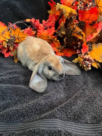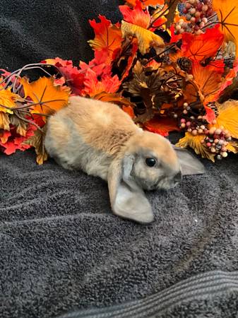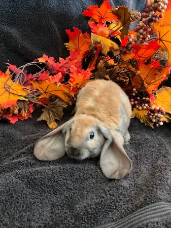 Male Velveteen lop bunny , very friendly, craves attention, looking for an indoor pet home only . Started on litter box training, 8 weeks old . Will come with a bag of hay . ** serious inquiries...