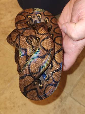 I have a stunning Brazilian rainbow boa looking for a home. She is a bit spicy, so the new owner must be experienced with the care of the species and spicy snakes. She eats frozen/thawed bigger mice, smaller rats, and is a very happy eater. re-homing fee to ensure she will be going to a good home. Please email me for more info. dropping the re-homing fee A BIT,