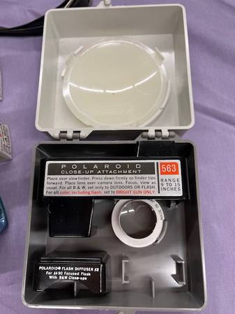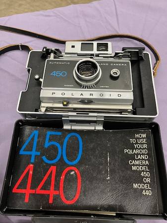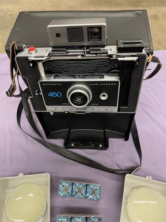 Nice Polaroid Instant Automatic Land Camera, model 450 with case, flash bulbs and filters for portraits and close ups. Well taken care of over the years! Anyone who is into vintage photography will...