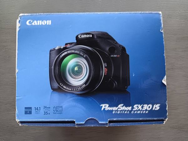 Canon PowerShot SX30 IS Camera. 14.1 Mega Pixels, Articulated rear screen. Includes Battery / Charger and 8 GB Memory Card. Excellent shape and ready to go. Original price $429.99