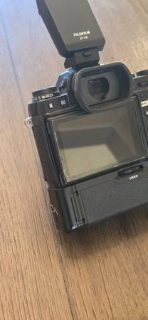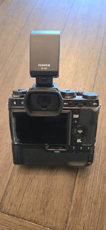 Fujifilm X-T1 with EF-X8 pop up flash, VG-XT1 vertical grip and XF 35mm f/2 WR lens. Only light use since new, includes original boxes. Has two batteries, one in the grip and one in the camera body....