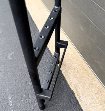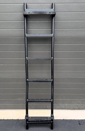 Our Sprinter rear door ladder is made with 1.25” round aluminum tube and formed aluminum sheet metal steps. It comes with black stainless hardware to keep it looking stealth.