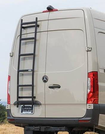 The Sprinter rear ladder is low profile, lightweight, and easy to mount. It looks great and gets the job done by allowing you easy access to the roof of your Sprinter van.