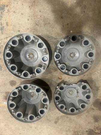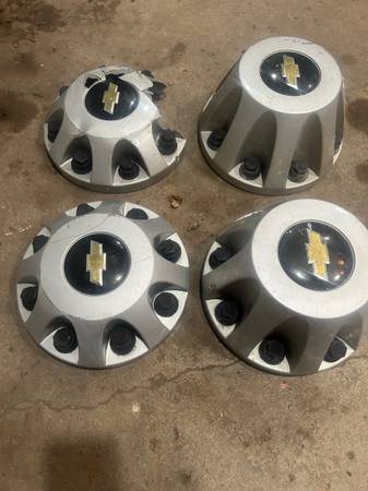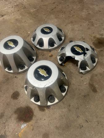 Selling four (4) center caps from a 2013 Chevrolet Silverado 3500 dually. May fit other years and models. $25.00 for all. If interested call or text 716-930-five-nine-six-zero