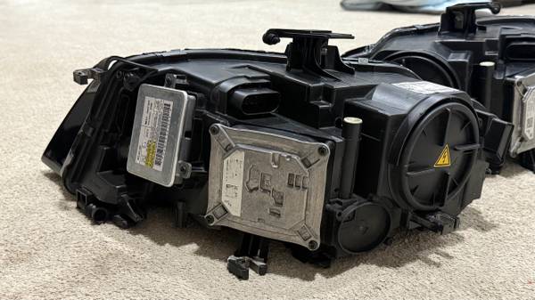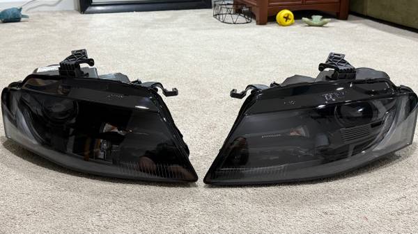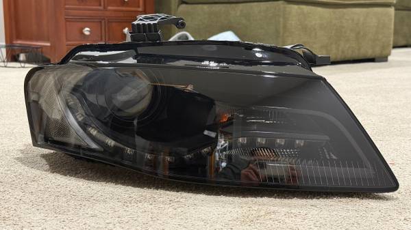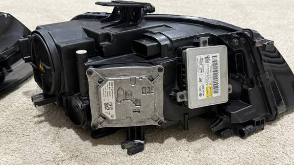 For sale is a pair of fully dressed Audi B8 A/S4 Bixenon headlights that have been modified with a G5r projector, smoked side marker lenses, chrome deleted for gloss black look, and finally finished off with new front lenses that aren’t OEM, but the eBay replacement option.