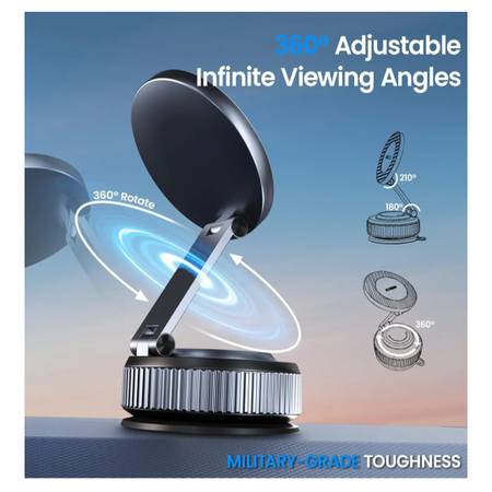 [360° Swivel & Dual-Axis Adjustment] This car phone holder features a 360° rotating base and 210° dual-axis folding metal arms, letting you effortlessly adjust the viewing angle for the perfect position. Easily switch between landscape and portrait mode whether you're in the car or at home. Tested over 5000 times for durability, it offers reliable performance for long-term use.