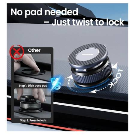 [Snap & Go Installation] No clips, clamps, or adhesive mess. Simply place it, twist the base clockwise to lock, and you're ready to drive. Want to remove it? Just twist counterclockwise to release the suction - no prying, no residue. This cell phone holder installs or detaches in just 1 second, making it perfect for quick swaps between cars or surfaces.Perfect for GPS, calls, and music control with one-hand operation.