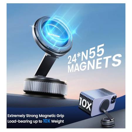 [No Hole Design - Strongest Magnetic Hold] Enjoy maximum magnetic contact. Unlike mounts with a hole, our solid circle uses 100% of its surface for a stronger, more reliable hold. Powered by 24 high-performance N55 magnets, upgraded car phone holder delivers a magnetic grip 300% stronger than standard magnets, generating an impressive 2800gf magnetic force.
