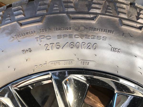 Chevrolet 20” OEM 6-lug black wheels with Goodyear Wrangler 275/60/20 Trail Runner tires. Tires have less than 800 miles with sensors. Came off 2025 Silverado Trail Boss. Will fit 1988-2026 Silverado or GMC Sierra. GMC centers available. $1850. Call show contact info