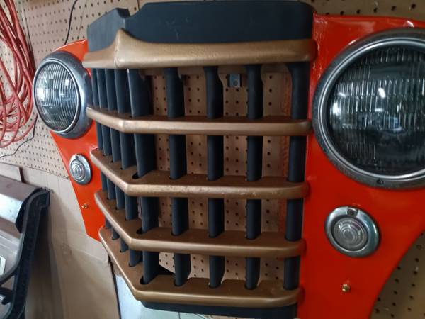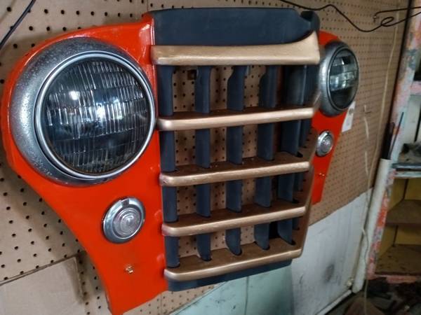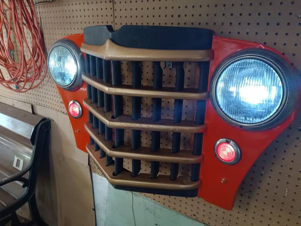 1948 jeep grille and header with lights man cave or bar room ready. wired for 110, corded, switched, led bulbs installed. pretty cool piece. located in Lake View, NY. 14085. phone calls only please,...