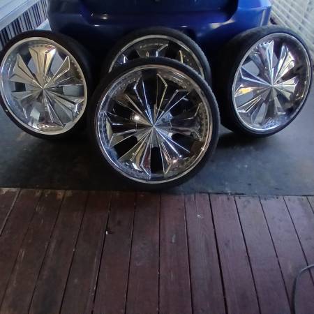 Selling 4 22" Dynasty Rims with Center Cap Covers, with 245/30ZR22 92W XL Tires like new, except on one of the rims, tire is not new. Also a Firestone Spare Tire P215/55R17 Asking $275 Can contact...