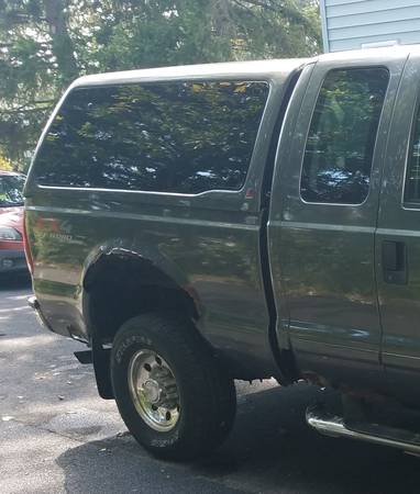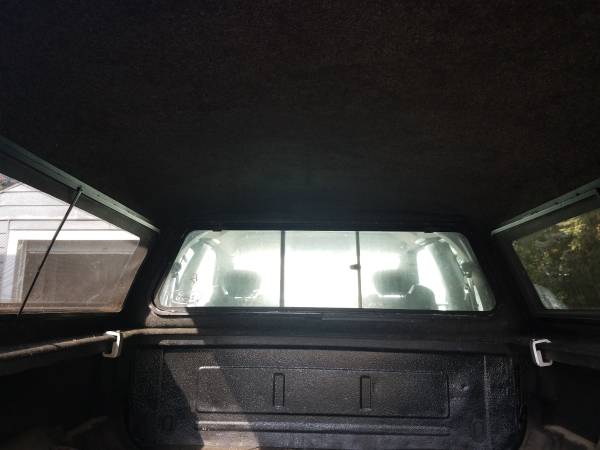 LEER Truck Cap currently mounted on a 2003 Ford F250 Super Duty, short bed. One screen has slight damage but stays on track. The window by the cab is not a slider, and does not allow access between the cap and the cab interior. No cracks or damage, however there is a slight "crazing" of the finish above the rear brake light at the top rear of the cap. Has lock and keys for the back window. Mounts are new. I utilized the 4-Pin access connector on the truck to power the cap, as I never used it. You may want to re-wire for your specific vehicle. Currently mounted on the truck, which does not move. The original wiring for the cap will be removed from the truck and given to the purchaser when the cap is sold. Inside bed measurements are 83in Deep by 67in Wide by 26in Tall.