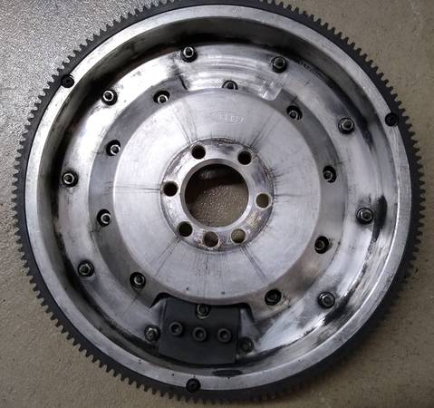 This particular example of the clutch has the optional Aluminum Pressure plate housing, for which I can't find the original cost. The (nearly) all-aluminum construction makes this one of the lightest clutches you can buy. The flywheel showed only 13.1 lbs on my scale. Have a look at the photos, the pressure plate basically looks like new, and the clutch disc only shows light wear.