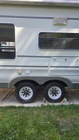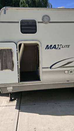 A beautiful Maxlite 23RS Travel Trailer in excellent shape. I believe we are the second owner of it and have had it since 2008. It is clean inside and out with the handy pack and play door and front bunks and the rear bed on a rear slide. We've had Many Adventures in it with our children and have just gotten a new motorhome for our next Adventures. It has 4 Newer tires. A newer battery. The roof has been serviced every year and there has never been any leaks. The refrigerator is an electric and propane unit that works fantastic. The underbelly is sealed so it works good in cooler weather. AC is cold. Heat is hot. Gas/Electric hot water tank. The outside kitchen extends fun when you are home cooking. Everything works and we are very sad to see it go. Make a reasonable offer.