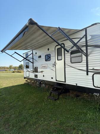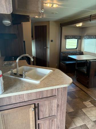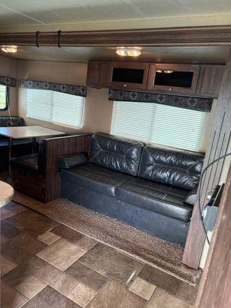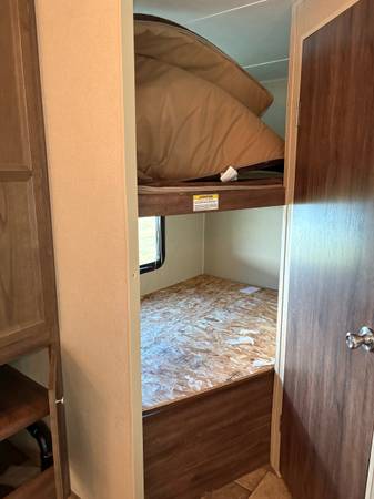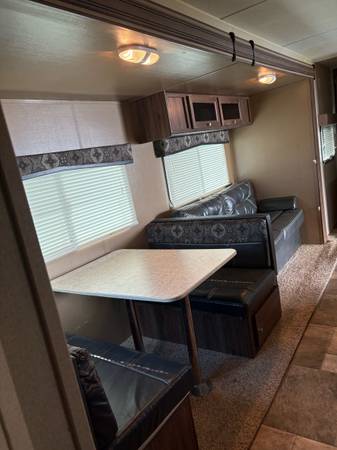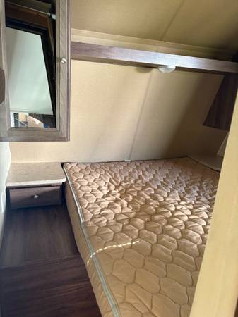See pictures. Table and couch turn into beds. Lots of storage. Stationed at a campground, so little travel.