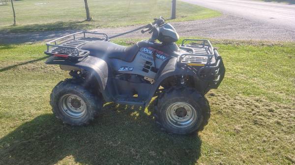 '02 Polaris sportsman 700 low hours low mileage. Runs and drives four-wheel drive works all drive shafts in decent condition. Recent work performed includes new rear drive shaft universal joint. New battery, paperwork includes bill of sale from me and bill of sale from previous owner. Polaris does neneedome maintenance and has been sitting around for a long time may require some TLC and is being sold as is. 1625 is below market value as I am trying to clear out room for the winter and need it to move. Price is firm.