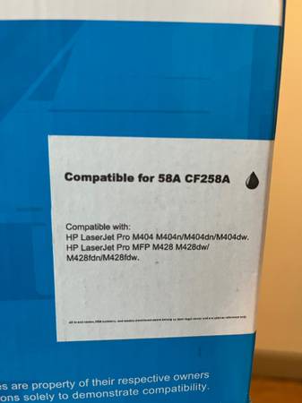 HP-compatible toner cartridges; off-brand and new but couldn’t get to work with our printer; couldn’t return