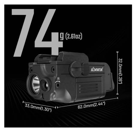Ambidextrous Control: The ambidextrous dual-switch design allows for effortless operation with either hand, giving you quick, intuitive access to all modes without breaking your grip.Weighing just 74g (2.61 oz) and measuring 2.44 inches, the WL10GL is compact yet built to last. Constructed from aerospace grade aluminum alloy with a HA III military grade hard-anodized finish, itβs IPX6 waterproof, impact resistant up to 2 meters, and recoil proof, ensuring durability in demanding environments