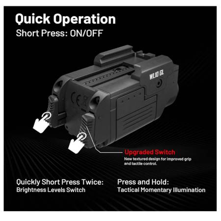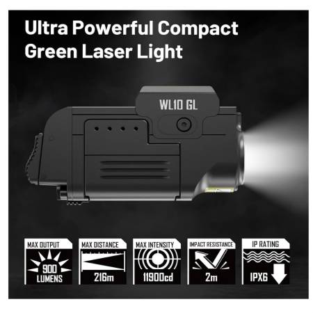Precision Green Laser: Featuring a highly visible 520nm green laser, the WL10GL allows for rapid and precise target alignment. The green laser can be activated independently for stealth targeting or used simultaneously with the white light for enhanced visibility in all lighting conditions. Designed for quick aiming, it gives you the tactical edge in high pressure situations where speed and precision are critical