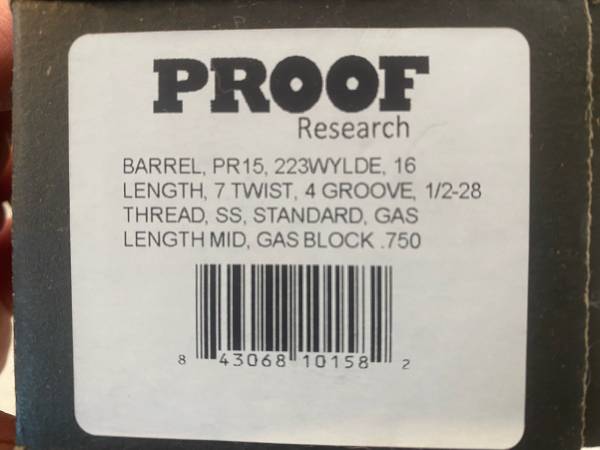 Proof Research Hand Rifled Barrel, brand new. Paid $600, asking $350.