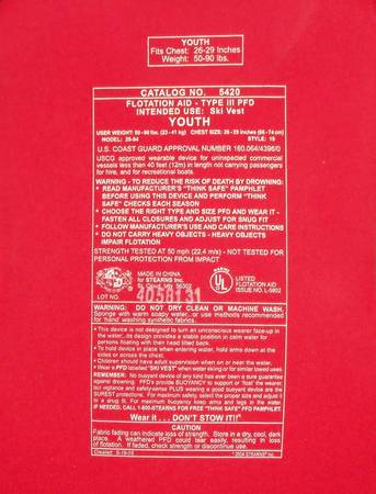 Sterns Youth Flotation Zippered/Buckled Ski Vest #5420 Type III PFD (New). Fits Chest Size 26-29 inches Weight 50-90 Pounds. See pictures. Asking $20.00. If interested please call only no texts to ....