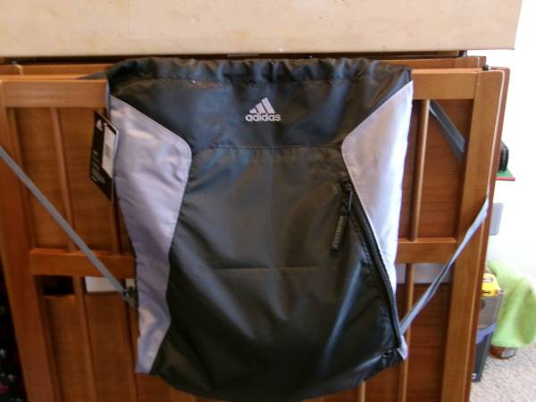 * *6 ADIDAS Gear/Gym/Golf Shoe Bag w/ Drawstring bag/tote. NEW. 6/$50.00 w/ shoulder straps ~ drawstring ~ zippered pocket ~ black/grey. * NEW in plastic bag ~ ONLY $10.00 each. * Quality at a low...