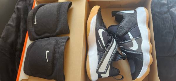 Vollyball Sneakers, Nike React Hyperset womans size 8.5 with knee pads. My granddaughter purchased everything new for volleyball but never got to use them. She paid over $85.00 for everything and is asking $100.00 for all. Please Call or Text: Phone show contact info