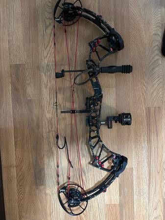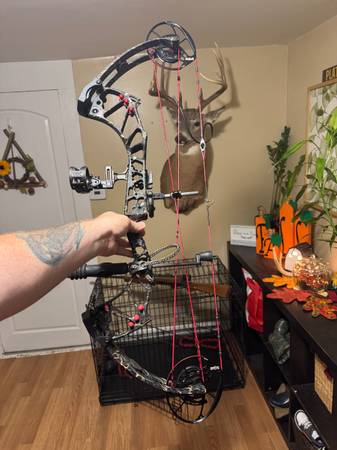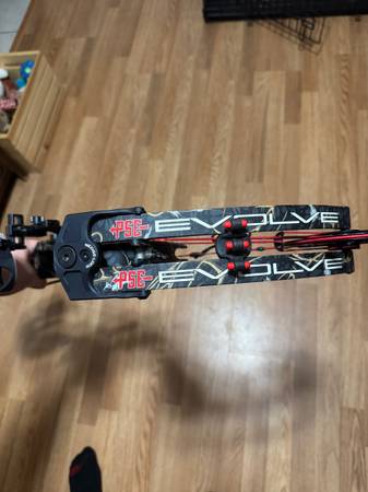 PSE Evolve compound bow 55-70lbs 3pin sight Whisker biscuit Stabilizer Comes with 5 arrows Quiver Bow case