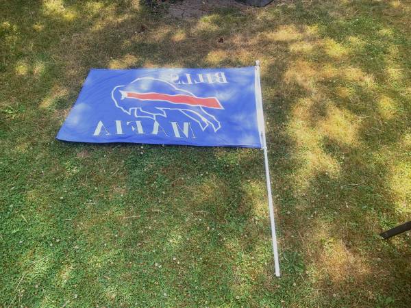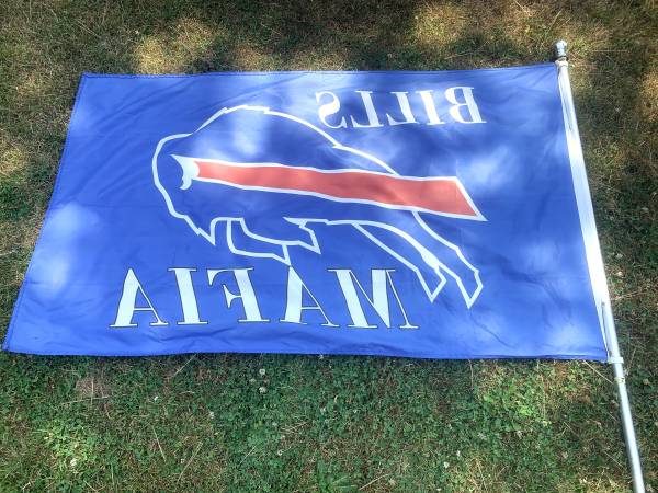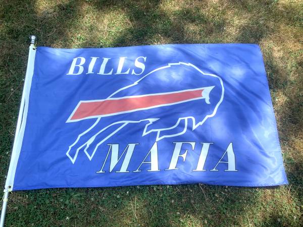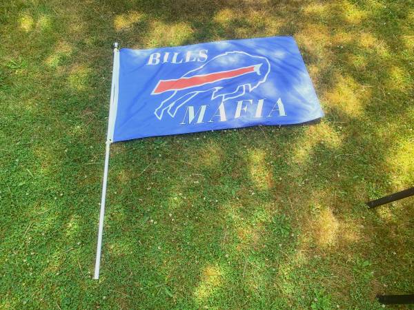 Selling this Buffalo Bills Mafia House Flag. Measures 5' x 3'. Already attached to flag pole, ready to shout your pride for our team! Condition is excellent.. no significant flaws. If interested, please leave a contact number and I'll get back to you ASAP. Also, if listing is up, flag is still available, no need to ask. Thanks