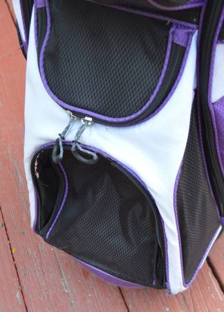 Tour Edge Cart golf Bag in excellent condition but has 1 broken zipper. Lots of pockets. The broken zipper is on the cooler pocket on the bottom of the bag. I've included some pics showing the...
