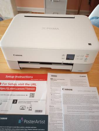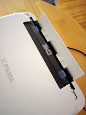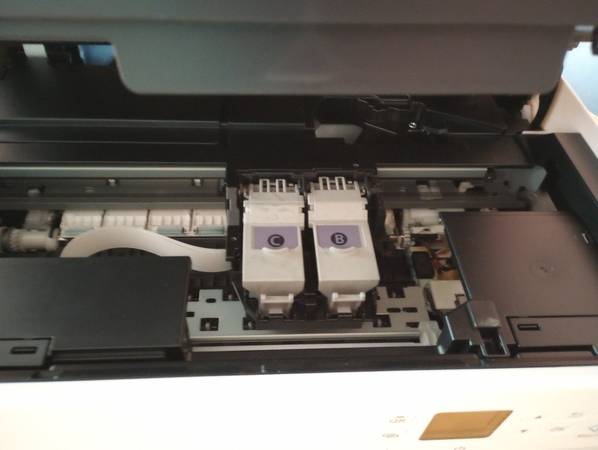 The printer is very clean and new looking. I did use the scanner a couple times to download things to my computer, and it worked perfectly. The ink cartridges always worked fine in this machine. I have removed my half-used ink cartridges to install inside a new printer. (I liked this printer enough to purchase the exact same one a second time!) The printer takes Canon ink cartridges CL-261 Color, and PG-260 Black.