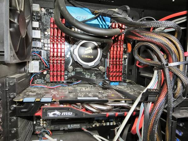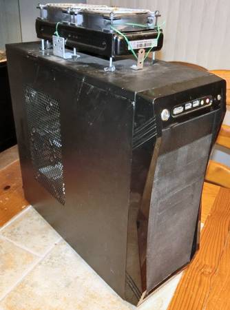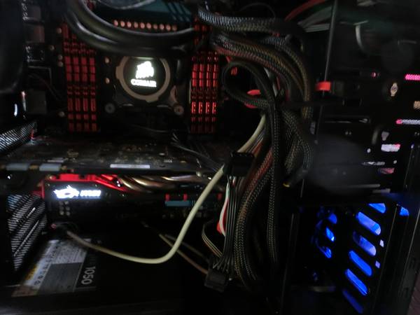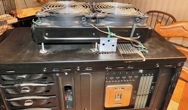 -The CPU liquid cooler was installed after the initial build way back when, it would not fit in the case so i mounted it on top.